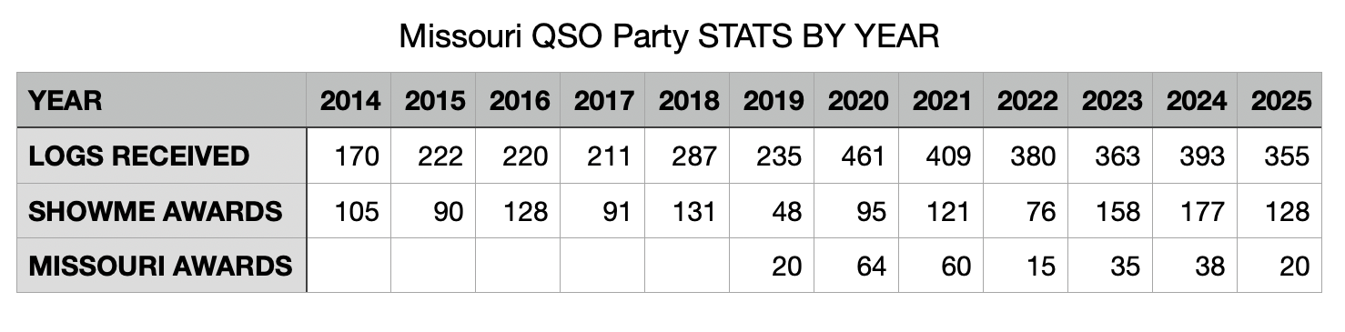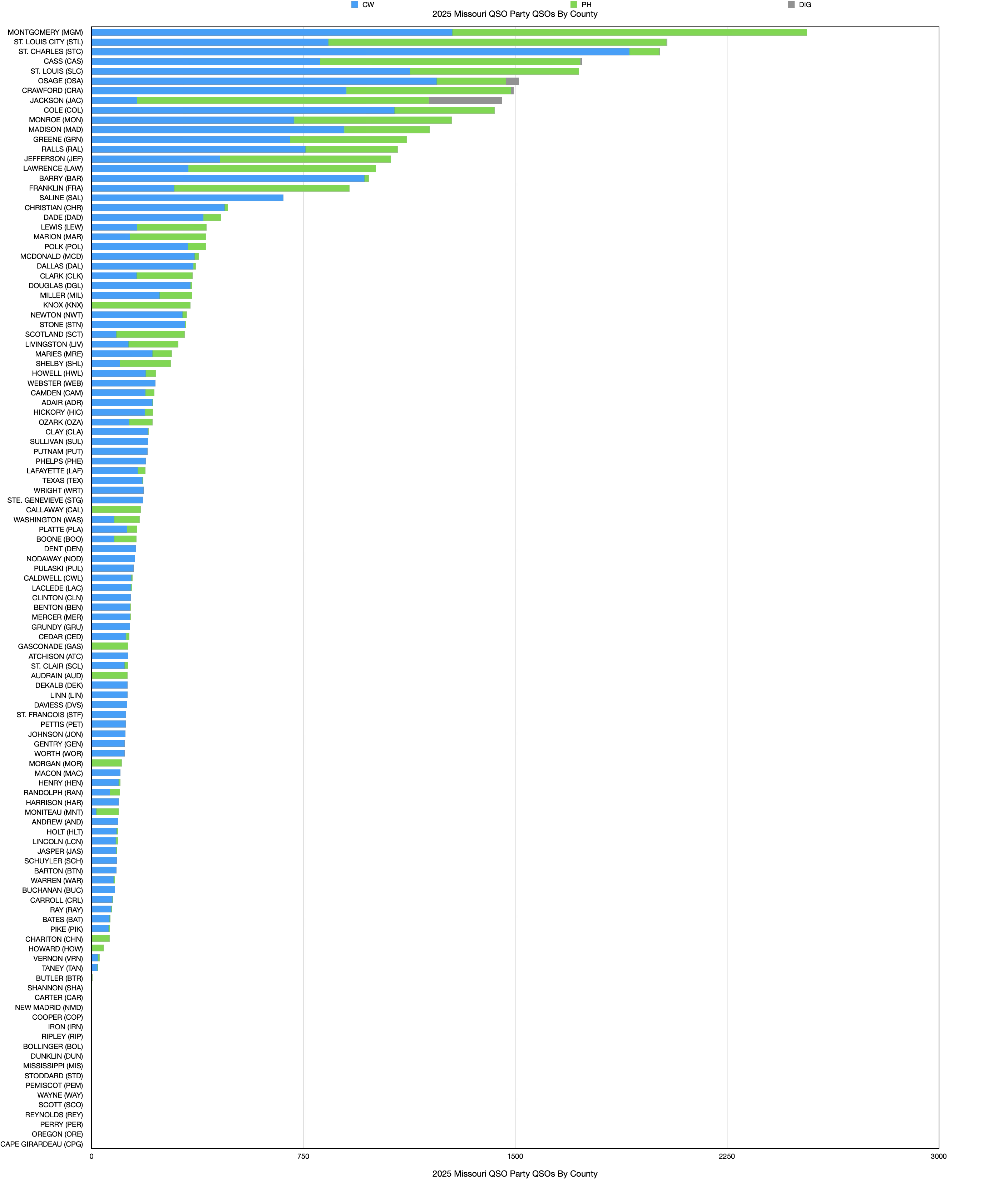 | COUNTY (ABREV) | QSO COUNT | CW | PH | DIG |